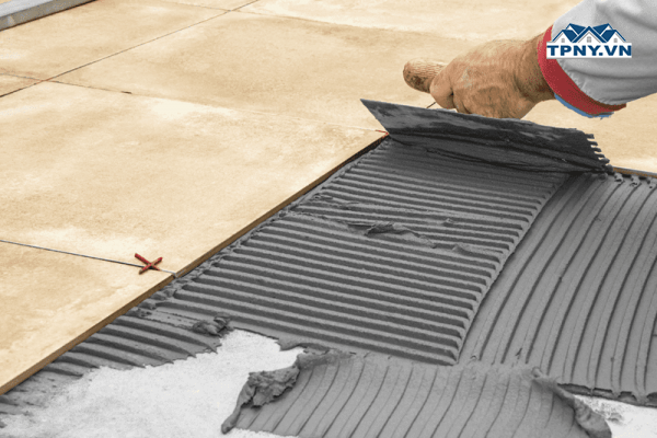 - Với trường hợp cần lát gạch cho miếng gạch kích thước lớn. Trong lúc thi công nên quét một lớp mỏng keo sau bề mặt gạch để tăng cường thêm độ dính.